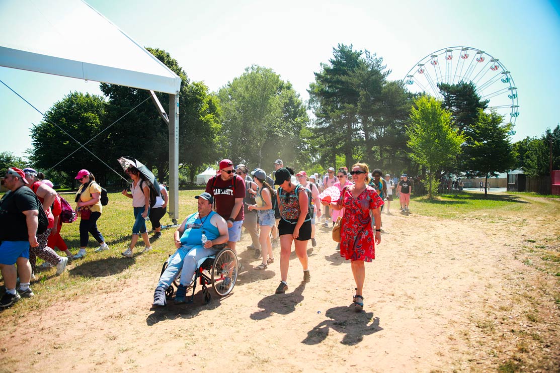 Lundi 30 juin 2025, les Eurockéennes ont accueilli 150 jeunes de l’ADAPEI 90 pour une visite du chantier du festival, suivie d’un concert privé d’Akira No Face, jeune rappeur belfortain accompagné par l’Opération Iceberg.